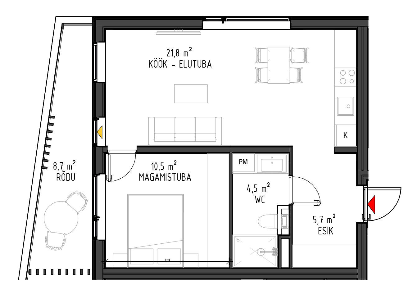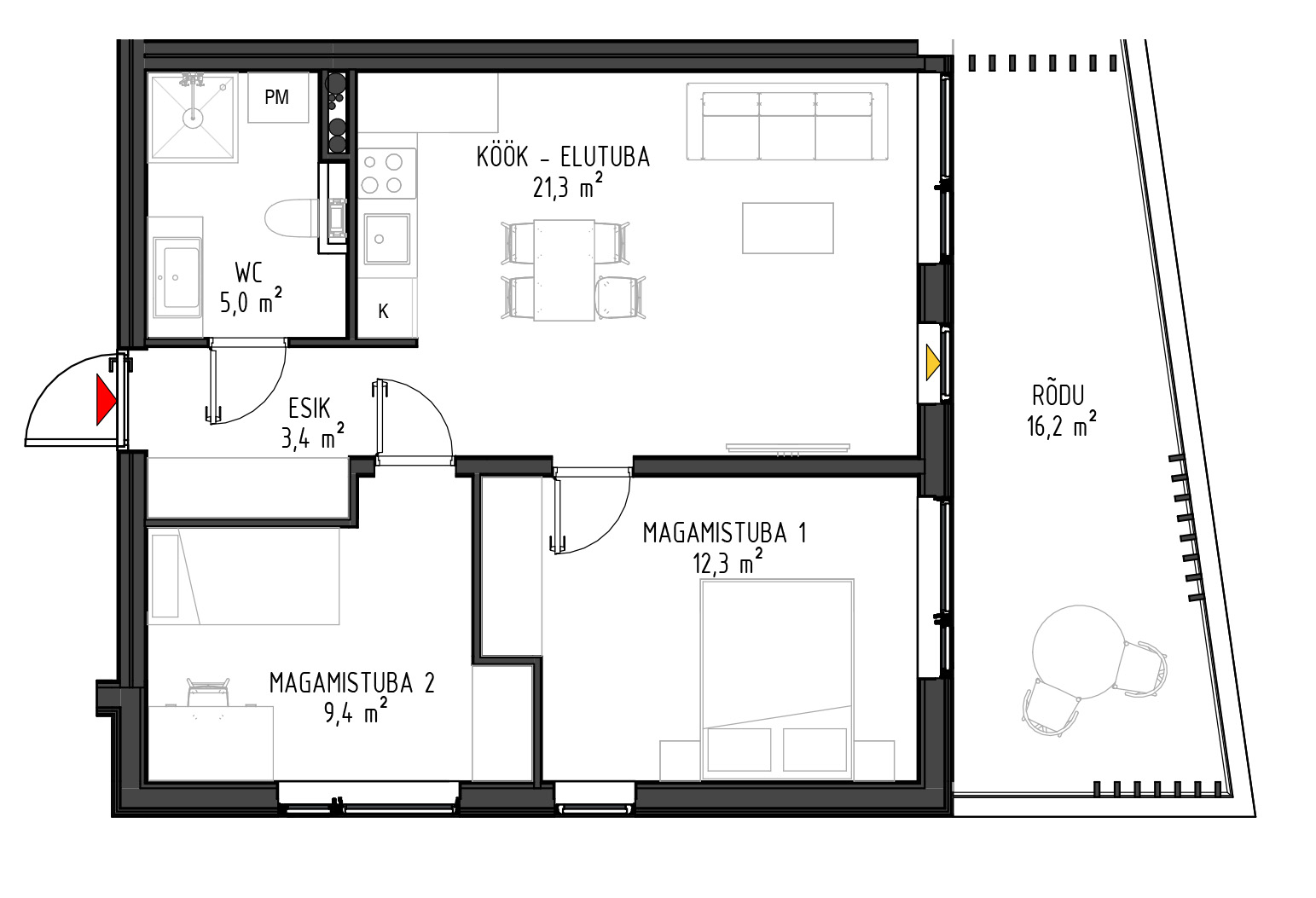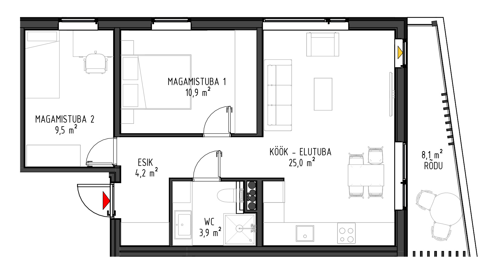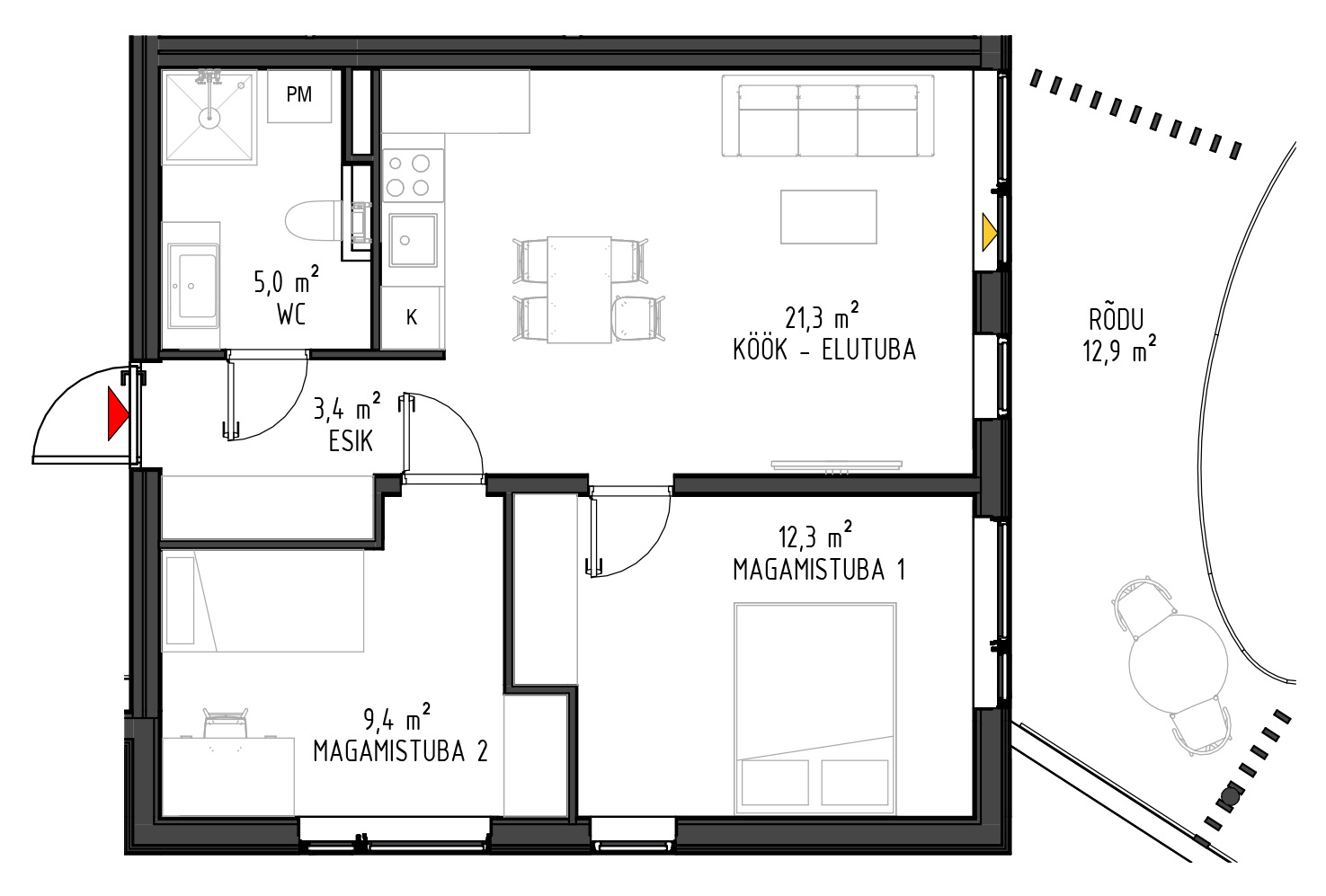 - Kõikide rõdud ja terrasside paiknemisel on arvestatud päikese liikumisega.