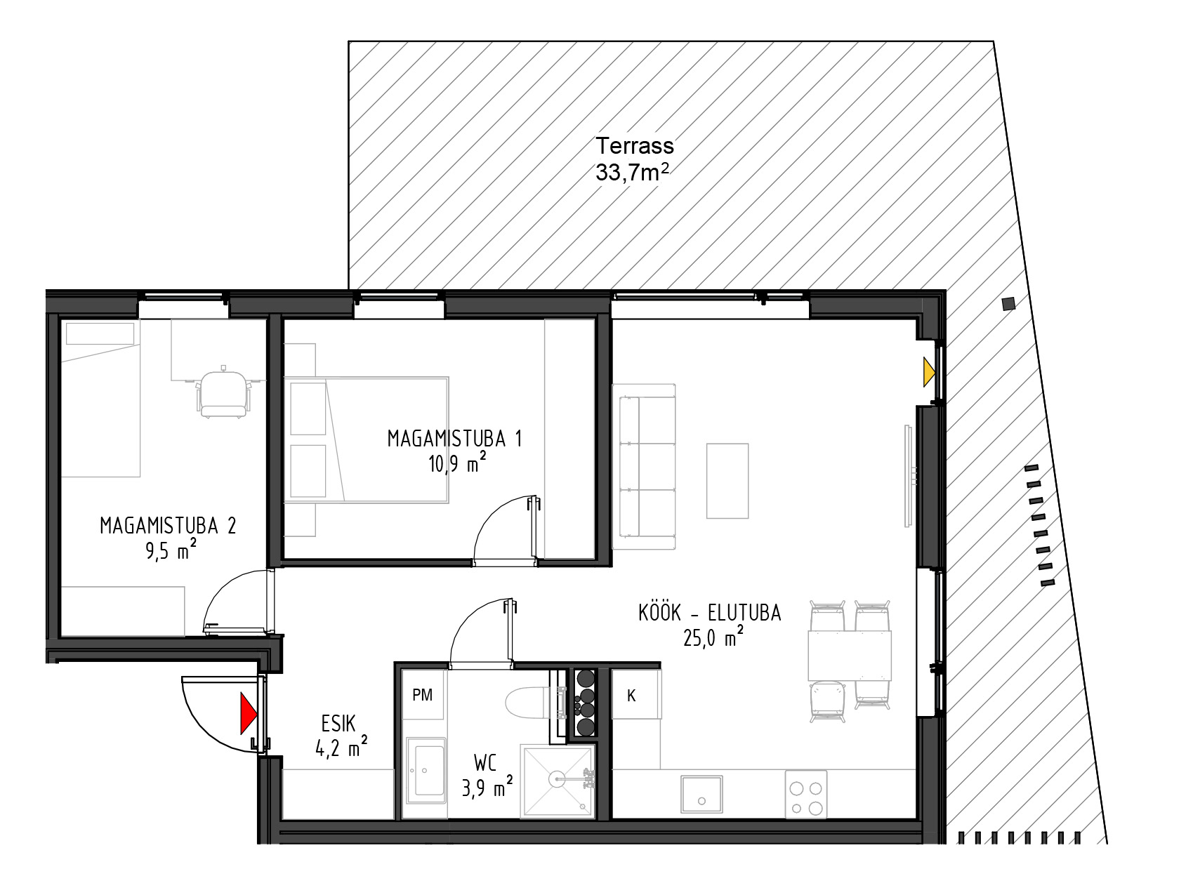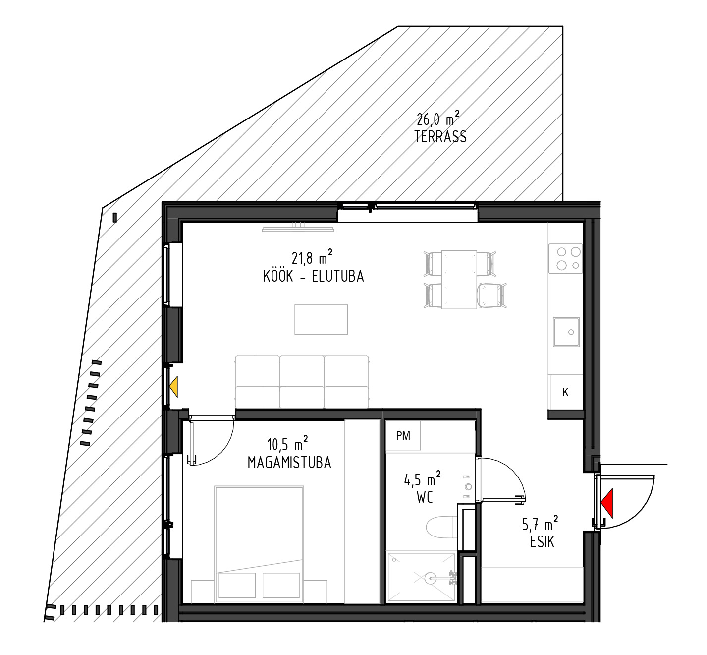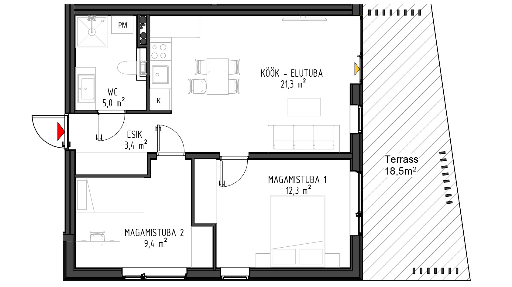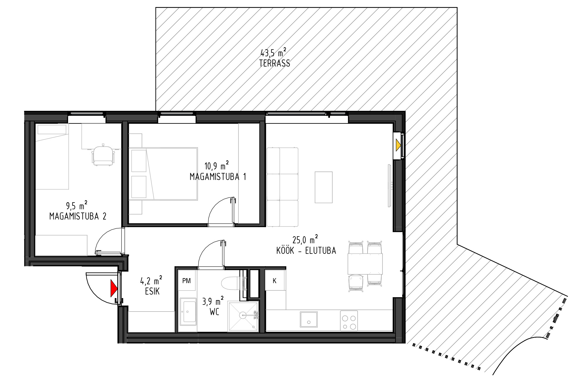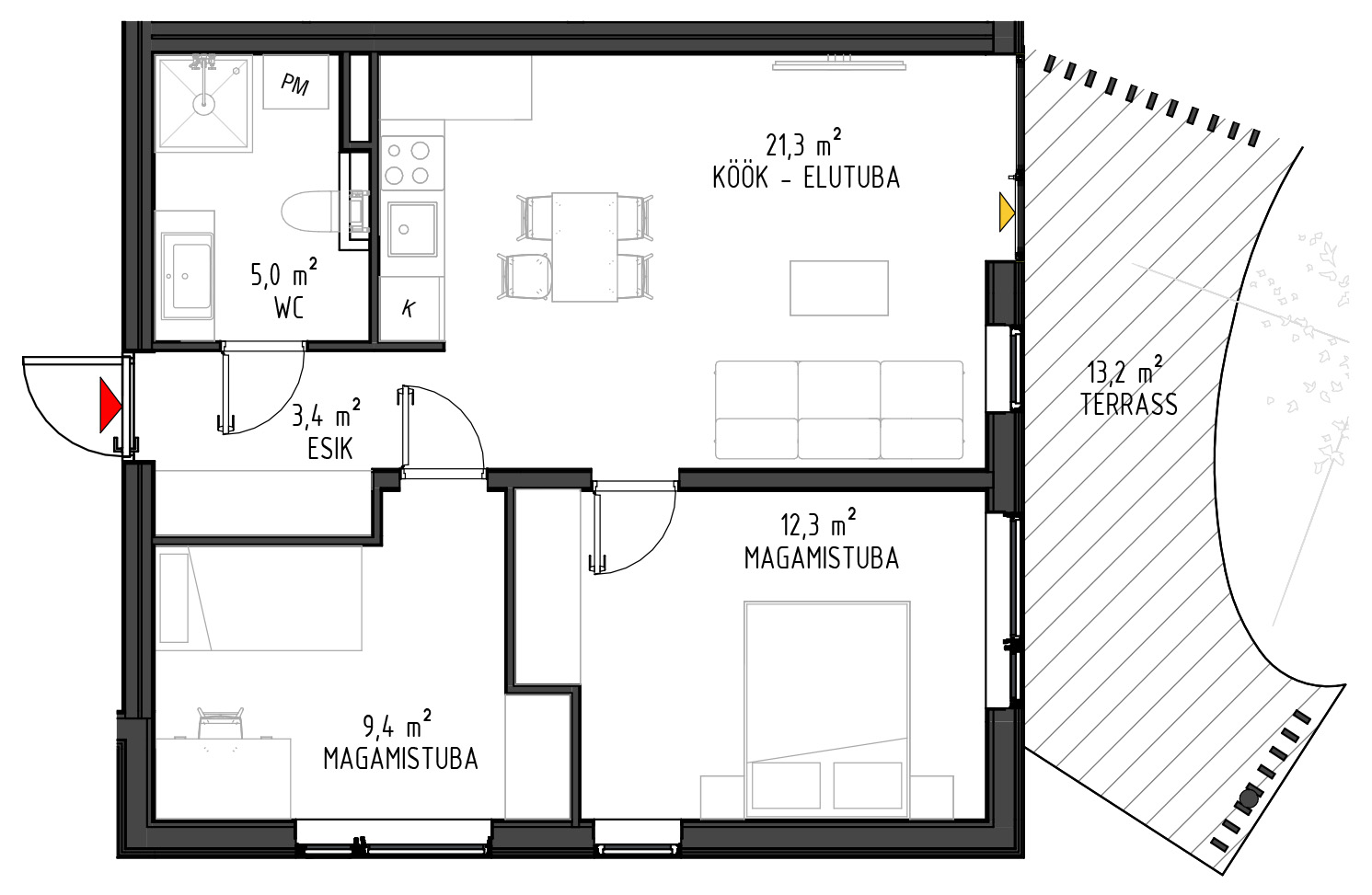 - Kõikide rõdud ja terrasside paiknemisel on arvestatud päikese liikumisega.