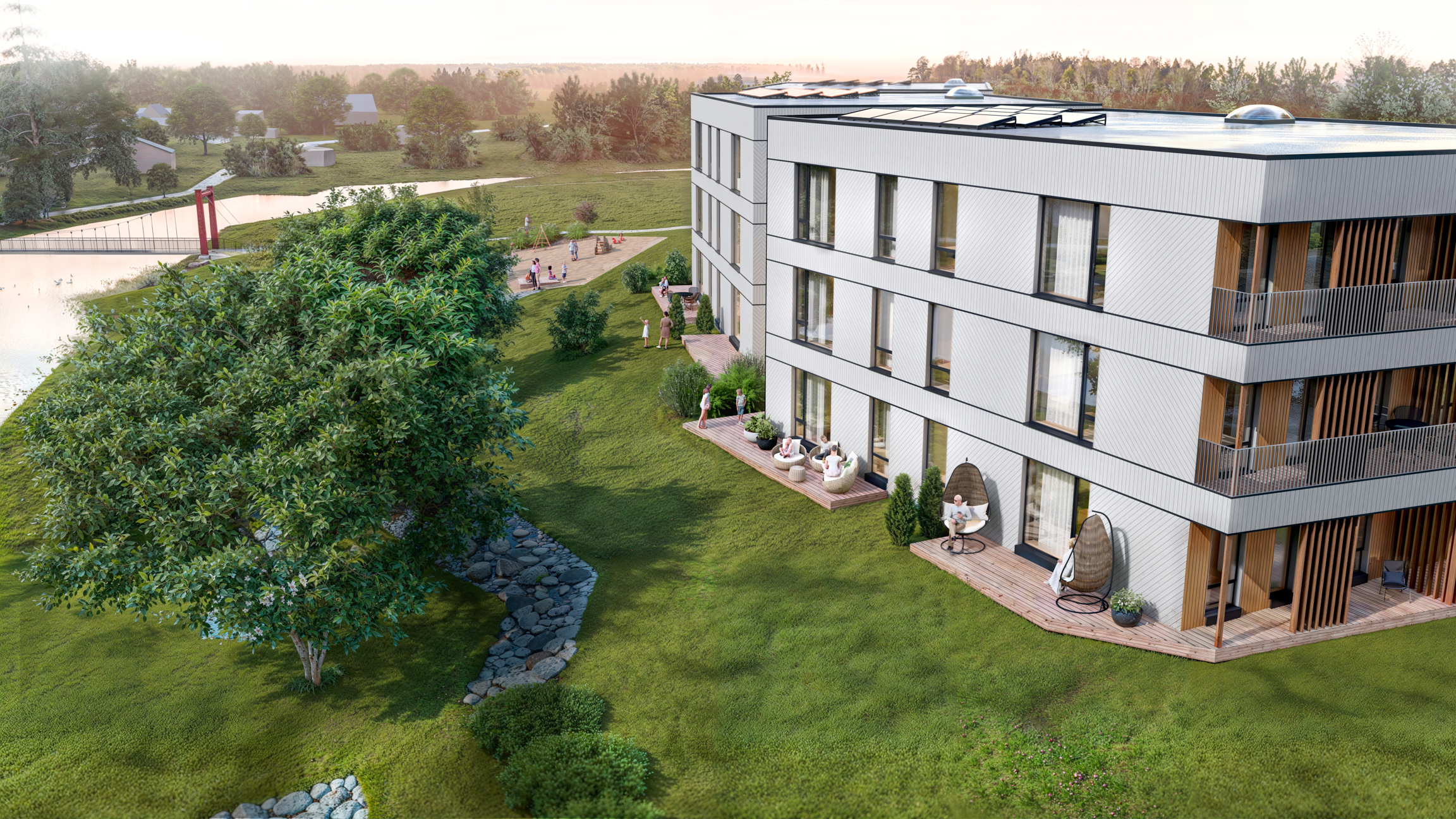 Kõikidel esimese korruse korteritel on terrass ning teise ja kolmanda korruse korteritel on rõdud. Korterite juurde kuuluvad panipaigad ja parkimiskohad vastavalt erikasutuskorrale. Hoone paikneb mitmetasandilisel kinnistul, kus on säilitatud ja täiendatud olemasolevat haljastust ning rajatud ühiskasutatavad välialad.